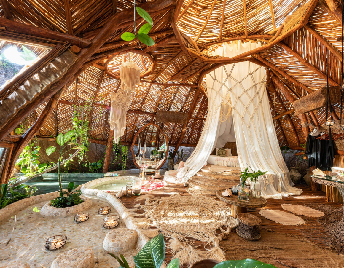 The forty-eight villas of AZULIK have been designed to create an atmosphere for rest and reconnection. They forgo air conditioning, television, or electric light, in favor of reducing letting guests get in tune with their surroundings.