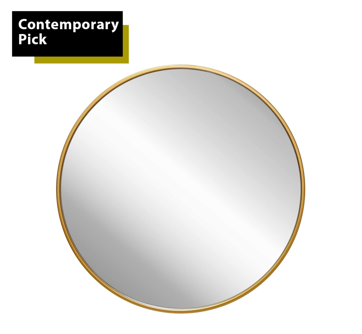 This lovely 24-inch mirror effortlessly rides the line between minimalistic and posh. The gold frame adds an element of warmth and can provide the perfect pop of color in an otherwise toned-down bathroom. It also makes a wonderful partner to a boldly patterned wall by complementing the design with competing for attention.