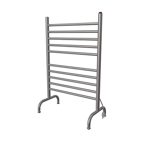 A simple design that is easy to assemble and use, the Amba Solo freestanding towel warmer is popular for a reason. The warmer has 10 bars that evenly heats two towels at once, making it great for couples and small families. With a slender build and the ability to heat up and dry towels, this warmer is perfectly suited to small bathrooms and laundry rooms. Simply switch on the heater for toasty towels, and leave it on to dry the wet towels after use. You can even use it to warm up your pajamas, but do make sure to avoid clothes with buttons and zippers.