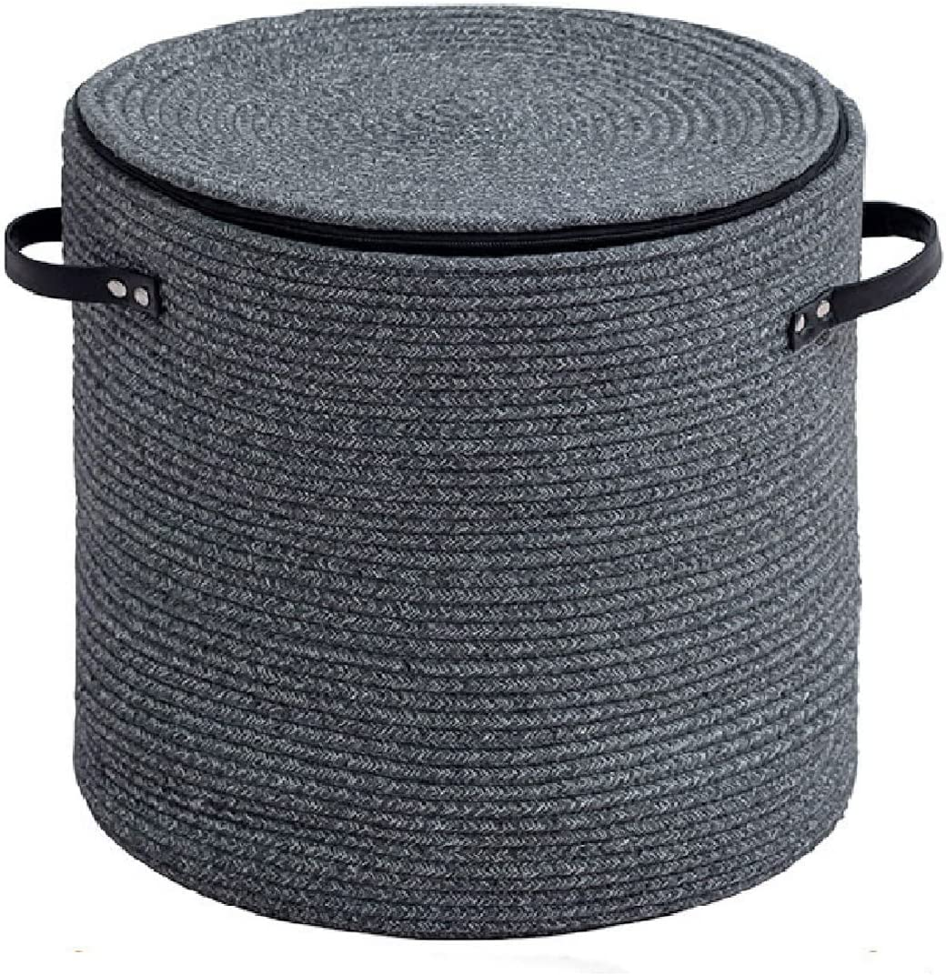 A cotton rope basket gives a camouflaged and cozy look to a storage solution perfect for a living room or bedroom. This is the perfect place to stash throw blankets, toys, or magazines to visually declutter your most lived in spaces.