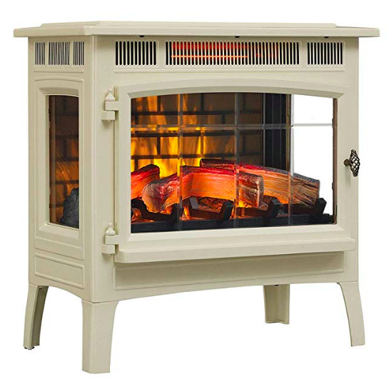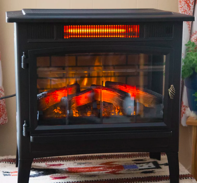 Our winning fireplace, the Duraflame Electric Infrared Quartz Fireplace, is the perfect combination of style, safety, and fireplace heat. It has the look of a classic wood-burning fireplace with all the safety features you need around your kids and comes in less than $200.