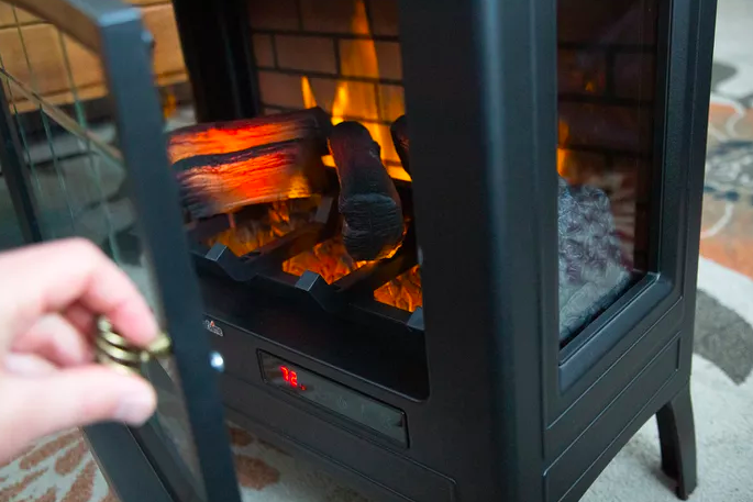 We say fire figuratively–part of why this was our favorite safety pick was because it’s not a real fire, but rather infrared quartz with a 3D flame effect behind the logs. This allows you to get the heat and humidity of a genuine fire without worrying about animals or small kids burning themselves on the flames or unit.