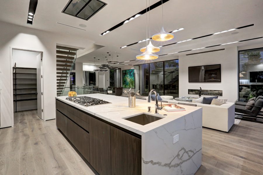 LA Build Corp built this home with the ultimate balance of modern details and luxurious space planning in mind. It truly epitomizes California’s interior/exterior lifestyle. With the wide variety of functional spaces throughout, from the expansive lower entertainment level to the open kitchen and living area, the stunning backyard and private rooms, this home offers something for everyone and focuses heavily on the importance of home entertainment and enjoyment.