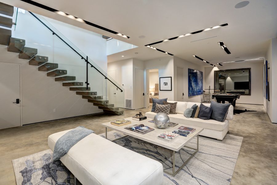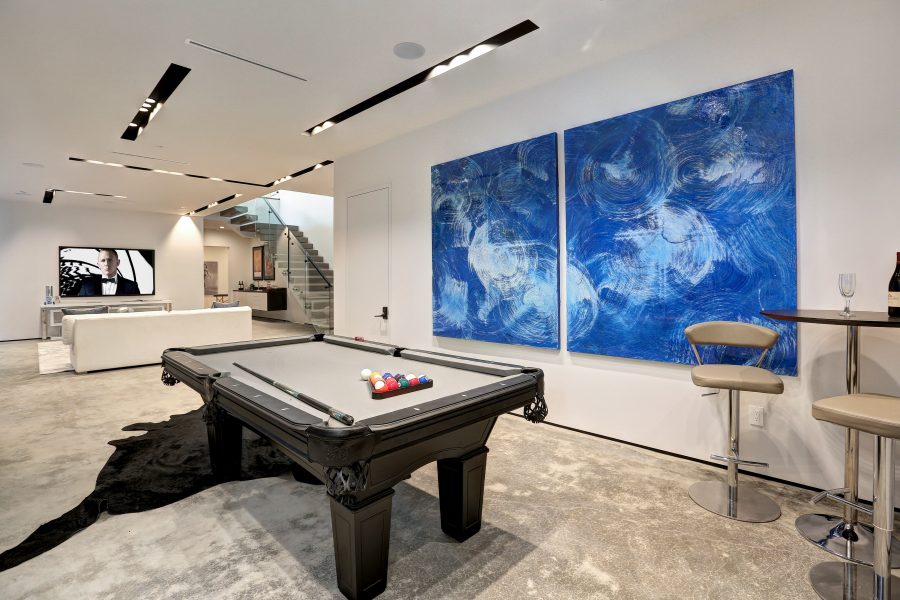 The ultimate entertaining space is incomplete without a luxurious basement with showstopping recreational features. It’s great to have spaces to entertain in beyond the living and dining room. In this home, LA Build Corp added a basement because they knew it would be the easiest way to gain an extra 1,700-2,000 square feet. Adding a basement (or simply another level to your home) is a great way to expand your home in limited lot sizes, especially in large and dense cities like Los Angeles. A basement is also a fun luxury because unlike other, more formal spaces in your home, like your living room and kitchen, you can do absolutely anything you want with it and design it to cater to your interests.